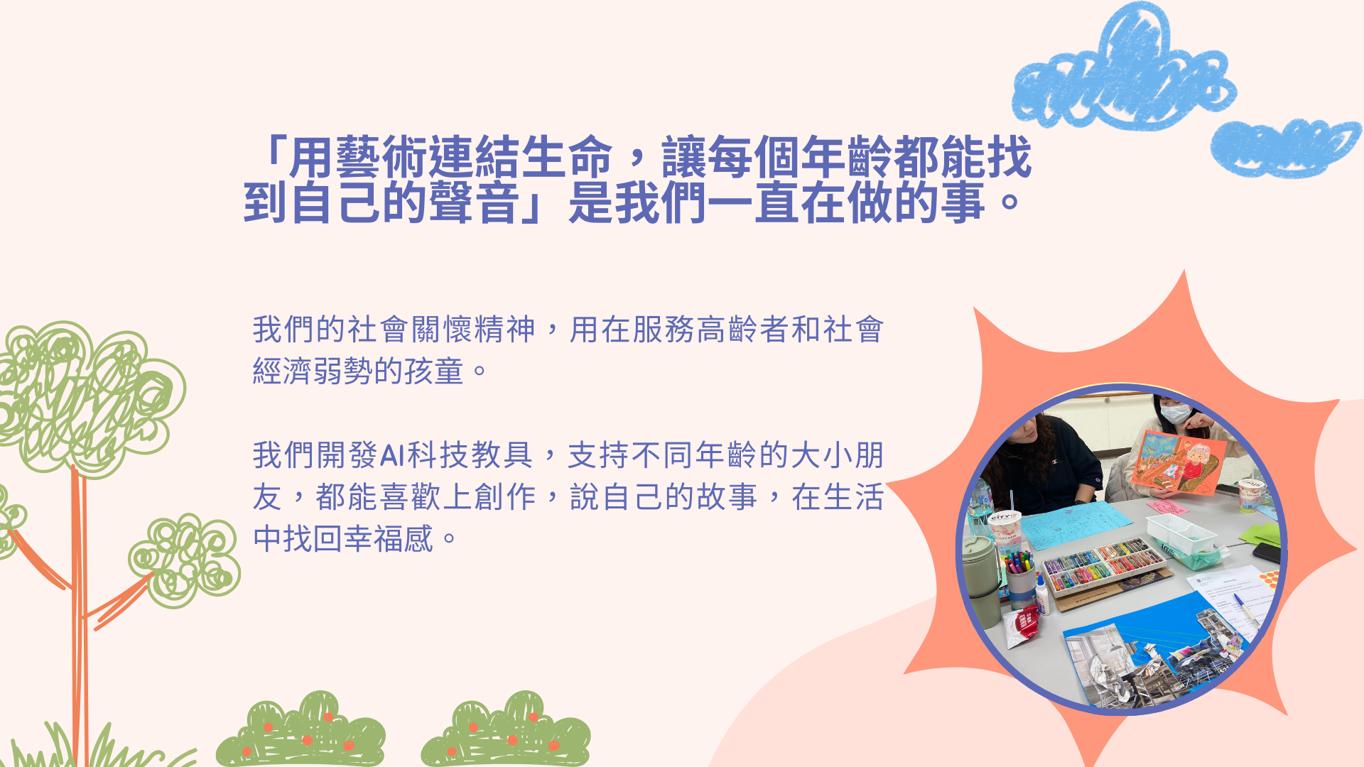 「用藝術連結生命,讓每個年齡都能找到自己的聲音」是我們一直在做的事。